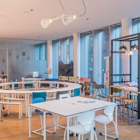 Im Frühjahr 2019 hat unser holländischer Partner (VDB Holding NL) ein spektakuläres Ausstellungskonzept mitten in Frankfurt/Main eröffnet. Auf über 800 m2 Ausstellungsfläche erleben Besucher zeitgemäße und zukunftsfähige Einrichtungskonzepte aus Bildung, Verwaltung und Aufenthalt, in einem eindrucksvollen Umfeld.