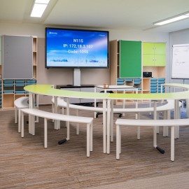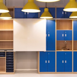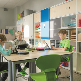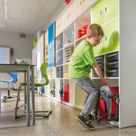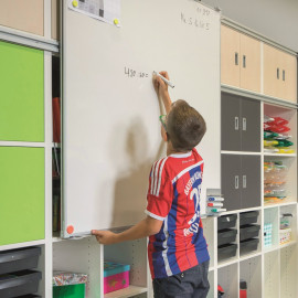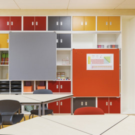 Ein Schranksystem ohne Kompromisse, speziell entwickelt für den Schuleinsatz. Gestalten Sie ihre Schrankwand selbst. Der All-in-One bietet Stauraum, Funktionalität und Präsentationsfläche in einer neuen Dimension. Die modulare Konstruktion passt sich nahezu jeder Umgebung und Anforderung an. Durch die aufgesetzten EM-LINE Schienen ist der Schrank auch für das EM-LINE Tafelsystem nutzbar und bietet eine hervorragende Präsentationsfläche. Der ideale Klassenzimmerschrank!