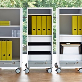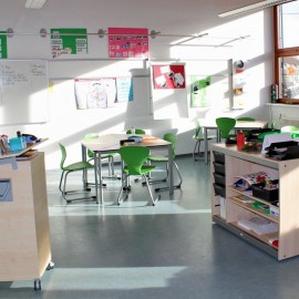 Der fahrbare, multifunktionale Lehrer-Arbeitsplatz. Einsetzbar als Lehrerpult, Medienwagen und Aufbewahrungsschrank. Alle für den Unterricht erforderlichen Unterlagen und Medien sind ständig präsent. Die Einteilung und Ausstattung ist individuell anpassbar. Der Caddy begleitet Sie von Klassenzimmer zu Klassenzimmer und findet seinen Platz auch im Lehrerzimmer.