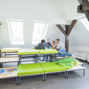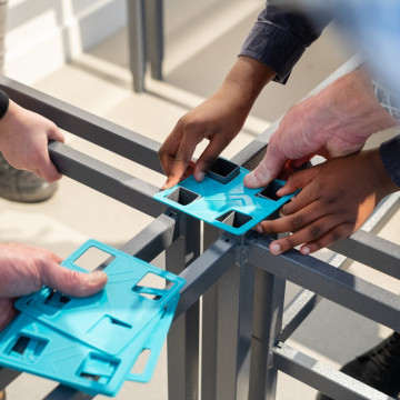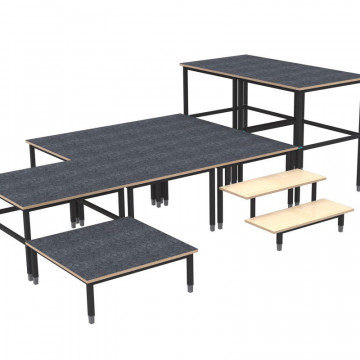 Die „Bühne“ bietet den richtigen Rahmen für Aufführungen und Veranstaltungen und ermöglicht auch kreative und komplexe Aufbauten. Der Auf- und Abbau erfolgt unkompliziert und werkzeugfrei und kann selbst von Grundschülern schnell und problemlos durchgeführt werden. Alle Verbindungen sind sicher und stabil.