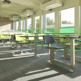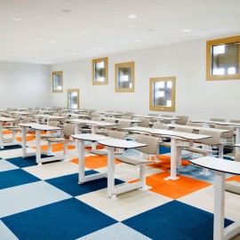In Kooperation mit der Technischen Universität Delft wurde ein revolutionäres Konzept entwickelt, das eine völlig neue Nutzung traditioneller Vorlesungssäle ermöglicht. Durch ein geniales Dreh- und Klicksystem kann die frontale Sitzformation sekundenschnell zu großen Gruppen-Arbeitsplätzen umgestaltet werden. Hörsäle können dadurch auch als „Arbeits- und Projekträume“ von Studenten genutzt werden. Durch diese multifunktionale Nutzung wird eine effizientere Auslastung der Vorlesungssäle erreicht und das meist knappe Raumangebot deutlich verbessert.