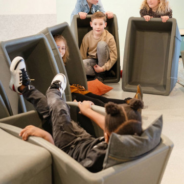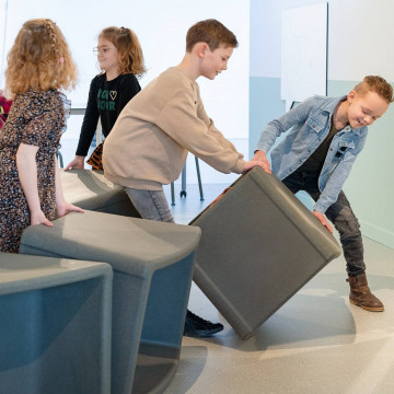 Bloxi wurde speziell für das pädagogisch wertvolle Konzept „Bewegtes Lernen in der Grundschule“ entwickelt und kann als Tisch, Bank und Stauraum in vielfältigen Formationen genutzt werden. Liegen, Sitzen, Stehen, Lernen und Spielen – mit dem Bloxi ist alles möglich.