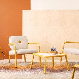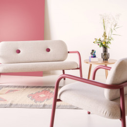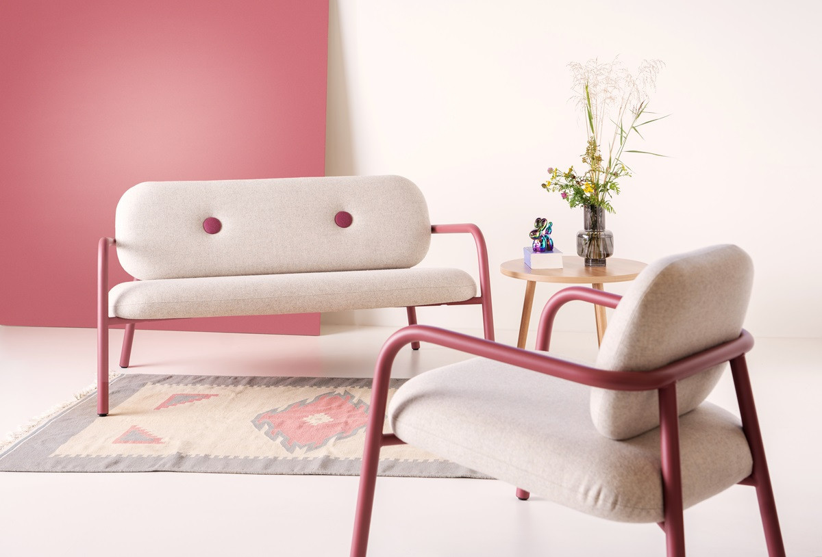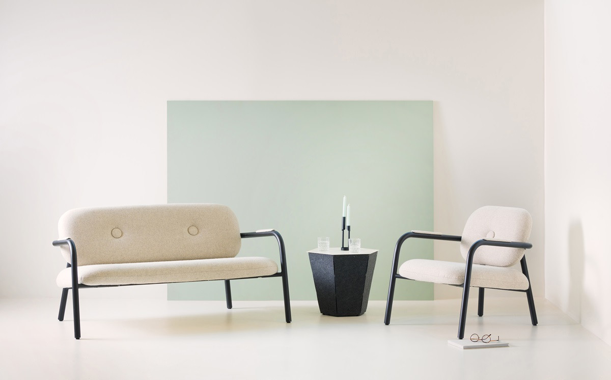Der neue Sessel und das 2-sitzige Sofa Bold überzeugen mit ihrem markanten Design und dicken, robusten Rohren. Diese stabile Rohrkonstruktion trägt nicht nur zum visuellen Statement des Stuhls bei, sondern bietet auch eine solide und bequeme Basis. Was Bold noch außergewöhnlicher macht, ist die Verwendung von Restmaterialien aus unserer eigenen Plattenabteilung oder aus zurückgesendeten Platten für Rückenlehne und Sitzfläche, wodurch der Stuhl nicht nur stilvoll, sondern auch eine nachhaltige Wahl ist.