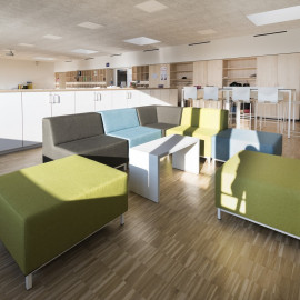 Seine Abmessungen sind exakt auf die Low Seat-Module abgestimmt, wodurch vielseitige Kombinationen entstehen, von kleinen Sitzgruppen bis zu großen Kommunikationsinseln.