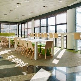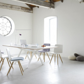 Die umfassende multifunktionale Stuhlserie ist mit zwei unterschiedlichen Sitzschalen erhältlich. Pit steht für eine etwas gerundete Sitzschale aus Buche-Multiplex, die sowohl lackiert als auch gebeizt erhältlich ist. Kiva steht für eine geradlinige Sitzschale mit kratzfester CPL-Beschichtung. Aufgrund der hochwertigen CPL-Beschichtung ist dieser Stuhl auch als „schwer entflammbar“ zertifiziert.