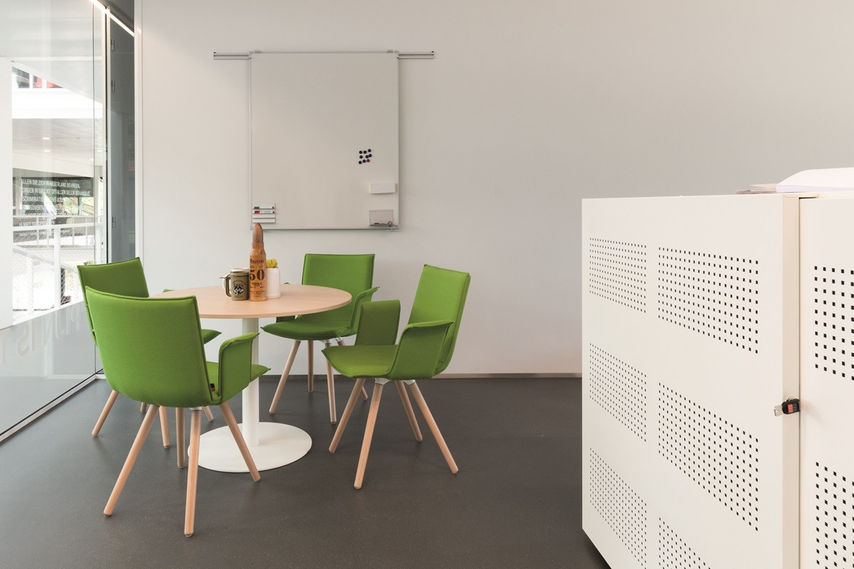 Der Tens ist ein hochwertiger Seminarstuhl, erhältlich in verschiedenen Ausführungen. Das Untergestell ist als Kufengestell, Spinnenbein (Stahl oder Holz) oder Kreuzfuß erhältlich. Durch eine Ausstattung mit stoffbezogenen Armlehnen kann die passende Optik geschaffen werden.