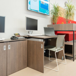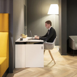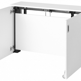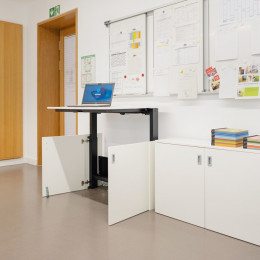 Homeoffice. Man will es zwar gerne, aber das Arbeiten am Küchentisch ist nicht so rückenfreundlich. Platz für einen eigenen Schreibtisch ist auch nicht vorhanden. Das ändert sich jetzt mit HomeFit© fürs Homeoffice. Im Handumdrehen vom „Schränkchen“ zum Sitz-Steh-Arbeitsplatz!