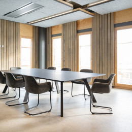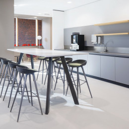 Für Touchdown- und Teamarbeitsplätze ist Connect die Lösung. Eine 4-Bein-Tischserie mit runden und rechteckigen Plattenformen für Sitz- und Steharbeitsplätze. Die 75 cm hohen Teamtisch sind mit Anschlüssen für Laptop und Smartphone ausgestattet. Die Konstruktion des Tischgestells bietet optimale Beinfreiheit. Der Tisch ist in verschiedenen Abmessungen für 4 bis 16 Personen erhältlich.