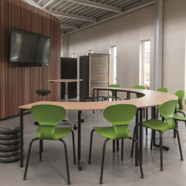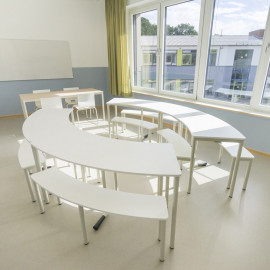 Bestehende Sitzordnungen in deutschen Klassenzimmern sind platzraubend und erschweren eine kooperative und kommunikative Unterrichtsform. DerKreis steht seit Jahrtausenden für das Miteinander und voneinander Lernen.