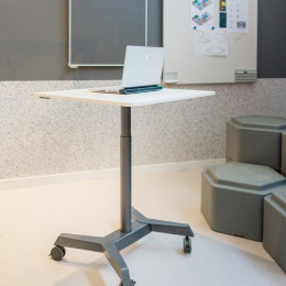 Der Boomerang Tisch ist einfach höhenverstellbar, so dass man an diesem Tisch sowohl sitzend als auch stehend arbeiten kann.
