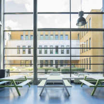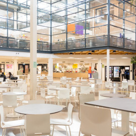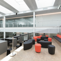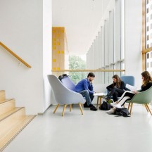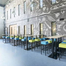 Aufgrund der vielfältigen Nutzung sind variable, funktionale Möbel von Vorteil. Einfaches Stapeln, Verketten, Transportieren etc. erleichtern das Handling. Da diese Bereiche meist als Fluchtwege dienen, greift häufig der Brandschutz. Ein umfassendes Sortiment entsprechend zertifizierter Möbel bietet umfangreiche Gestaltungsmöglichkeiten.